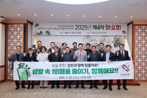 [당진=내외뉴스통신] 강봉조 기자 당진시(시장 오성환)는 25일 시청 해나루홀에서 당진시 기관장 모임인 ‘화요회’를 개최했다고 26일 밝혔다.이번 회의에는 오성환 시장을 비롯해 당진시의회, 평택해양경찰서, 당진우체국, 제1789부대 2대대 등 20여 개 기관장이 참석했다.이날 회의에서는 공공기관 내 다회용 컵 사용 확대와 텀블러 할인 지원사업 홍보 등 시민이 직접 참여할 수 있는 일회용품 줄이기 기반 조성에 공공기관이 선도적으로 힘을 모으기로 했다. 현재 당진시의 카페 텀블러 추가할인 지원사업에는 90곳의 카페가 참여하고 있으며,