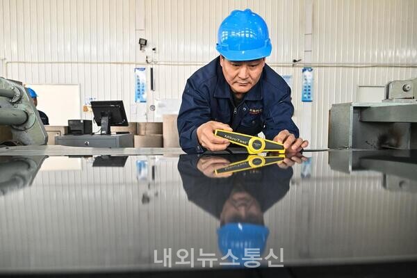 25일 장쑤(江蘇)성 쑤저우(蘇州) 신잉(新穎)신소재테크 냉장고 패널 자동화 생산라인에서 직원이 제품의 도장막 두께를 측정하고 있다. 최근 수년간 쑤저우시 샹청(相城)구는 비즈니스 환경을 최적화해 민영기업의 애로사항을 실질적으로 해결하고 기업의 혁신·전환을 지원하며 민영 경제 발전을 추진해왔다.내외뉴스통신, NBNNEWS